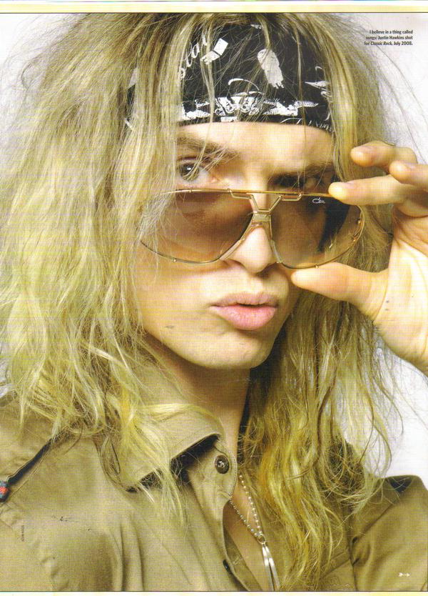 He bounds onto the stage, plain black shirt and tight trousers of the kind that he was born to wear. Blonder than ever, looking good and healthy and fit. The rest of the band are similarly clad in jeans that surely must have been sewn on, and all in the headbands that HL followers have been giggling over for weeks.